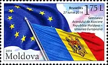 Selo moldávio de 2014 comemorando o acordo de associação à União Europeia