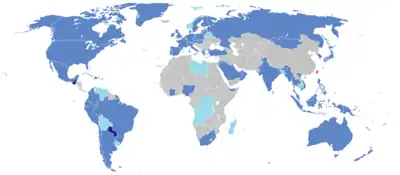 Países com um escritório de representação, missão, ou escritório comercial e cultural de Taiwan