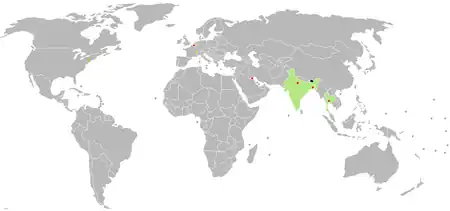 Mapa das missões diplomáticas de Butão.
