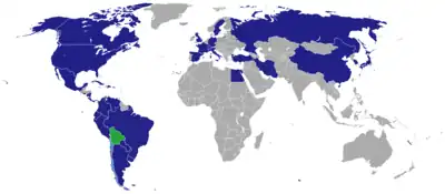 Mapa das missões diplomáticas na Bolívia