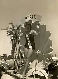 Martha Rocha (foto) durante o desfile das nações em Long Beach, competindo pelo Miss Universo 1954.
