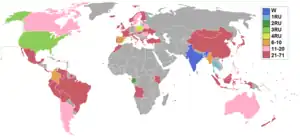 Américas: 19. (Cerca de 27% do total de candidatas)