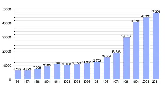 | Variação demográfica do município entre 1861 e 2011[3] |