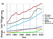 A produção de energia elétrica é a maior responsável pelas emissões de gás carbono na atmosfera. Mesmo com o acordo de Kyoto, as emissões de gás carbono aceleraram 1,7% entre os anos 2000 e anos 2010, se comparado com a década passada. Ao invés de fontes de combustíveis fósseis como o petróleo e o carvão, pode-se desenvolver usinas hidroelétricas e usinas nucleares, que são as principais fontes de energia de baixo impacto. Fontes de energia eólica e energia solar também tem se tornado mais baratas.[6]Apesar disso, há obstáculos para aumentar a produção de energia renovável, como o barulho produzido pelas turbinas de energia eólica[7], espaço necessário para a construção de usinas de energia solar[8], e os riscos associados às usinas nucleares.
