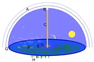 O mundo foi criado pela explosão de um ovo de ave. O céu é formado pelo topo da casca do ovo e é suportado por uma coluna de adesão à terra pela Estrela Polar. O movimento das estrelas é explicado pela rotação do céu e da coluna. Esta rotação cria um enorme turbilhão ao nível do solo. Este turbilhão representa o acesso ao mundo dos mortos, Tuonela.