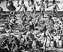 Preparo pelos guaranis de uma bebida alcoólica chamada Ka'u'y (cauim)