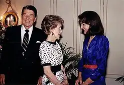 - Após a explosão econômica ocidental em meados da década de 1980, a geração mais jovem teve uma influência menor na moda, pois teve menos impacto no mercado. O principal consumidor passou a ser as gerações mais velhas, financeiramente mais estáveis e influenciadas por notícias políticas internacionais. O thatcherismo foi promovido no Reino Unido pelo Partido Conservador Britânico. A líder feminina do partido conservador britânico, Margaret Thatcher, em seu terno de poder rapidamente se tornou um dos símbolos mais conhecidos da década de 1980. Os ternos usados por Thatcher eram geralmente em tons únicos com um chapéu, jaqueta e saia combinando, que terminava abaixo do joelho. Um ombro largo e um colar de pérolas também faziam parte de seu traje regular. Seu estilo político era direto, eficaz e às vezes criticado como não empático o suficiente. Mas não há dúvida de que sua aparência retratava sua habilidade, poder e autoridade, que é o que muitas mulheres trabalhadoras desejavam naquela época.[17][18]