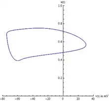 Por existirem quatro variáveis de estado, visualizar o caminho no espaço de fase pode ser difícil. Normalmente, duas variáveis são escolhidas, a voltagem e a variável de gating de potássio , que permite visualizar o ciclo limite. No entanto, é preciso ter cuidado, pois este é um método ad hoc de visualizar o sistema quadri-dimensional. Isto não prova a existência do ciclo limite.