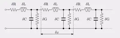 Em engenharia elétrica, o modelo de parâmetros distribuídos, modelo de elementos distribuídos ou modelo de linha de transmissão de circuitos elétricos pressupõe que os atributos do circuito ( resistência, capacitância e indutância ) estão distribuídos continuamente por todo o material do circuito. Isso contrasta com o modelo de parâmetros concentrados mais comum, que pressupõe que esses valores sejam agrupados em componentes elétricos unidos por fios perfeitamente condutores. No modelo de parâmetros distribuídos, cada elemento do circuito é infinitesimalmente pequeno e os elementos de conexão dos fios não são considerados condutores perfeitos; isto é, eles possuem impedância. Diferentemente do modelo de parâmetros concentrados, este assume corrente não uniforme ao longo de cada ramo e tensão não uniforme ao longo de cada fio. O modelo distribuído é usado onde o comprimento de onda se torna comparável às dimensões físicas do circuito, tornando o modelo concentrado impreciso. Isso ocorre em altas frequências, nas quais o comprimento de onda é muito curto ou em linhas de transmissão de baixa frequência, mas muito longas, como linhas de energia aéreas .