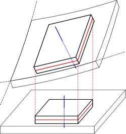 ![]() Deslocamento da superfície média (esquerda) e de uma normal (direita) |