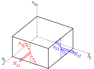 Este deslocamento pode ser decomposto em uma soma vetorial do deslocamento da superfície média e um deslocamento perpendicular ao plano na direção . Podemos escrever o deslocamento no plano da superfície média como
