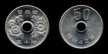 A moeda de cinquenta ienes (五十円硬貨 Gojū-en kōka?) é uma denominação do iene japonês. O design atual foi cunhado pela primeira vez em 1967. [1]