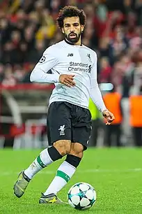 Em 22 de junho de 2017, assinou com o Liverpool, por 42 milhões de euros, mais 8 milhões de bônus, se tornando o jogador africano mais caro da história.[70][71] O atacante recebeu a camisa 11, antes pertencente a Roberto Firmino que passou a usar a 9.[72] Salah marcou em sua estreia contra o Watford em um empate por 3–3 em 12 de agosto.[73] Em 23 de agosto de 2017, Salah marcou seu segundo gol pelo Liverpool, no jogo de volta da rodada play-off da Liga dos Campeões da UEFA de 2017–18 contra o Hoffenheim, a partida terminou 4–2 (6–3 no agregado).[74] Quatro dias depois, marcou e deu uma assistência na vitória por 4–0 sobre o Arsenal.[75]