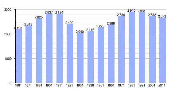 | Variação demográfica do município entre 1861 e 2011[3] |