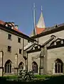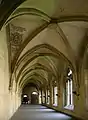 Em 1360, os claustros do mosteiro foram decorados com uma sequência de 85 pinturas de parede góticas com situações do Antigo e Novo Testamentos da Bíblia. Os claustros góticos também exibem afrescos desbotados com uma pitada de simbolismo pagão do século XIV.[2] O monastério foi "barroquizado" entre os séculos XVII e XVIII, período em que as duas torres do templo foram adicionadas.