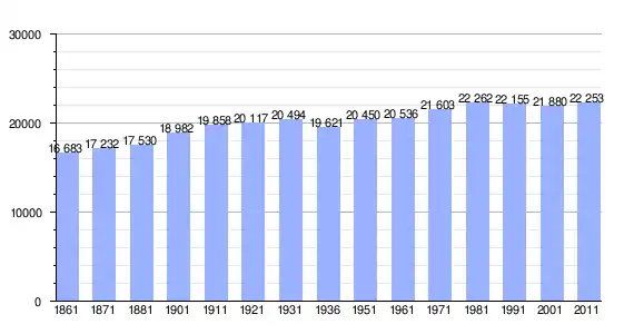 | Variação demográfica do município entre 1861 e 2011[3] |