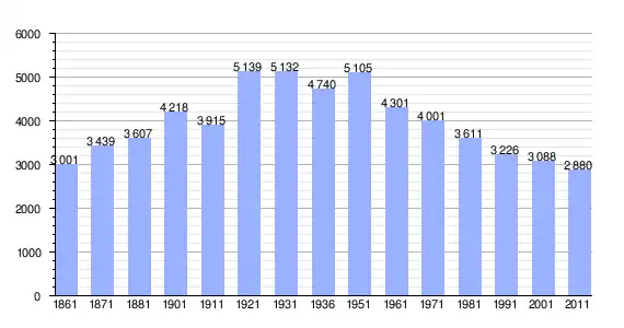 | Variação demográfica do município entre 1861 e 2011[3] |