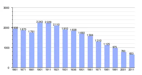 | Variação demográfica do município entre 1861 e 2011[3] |