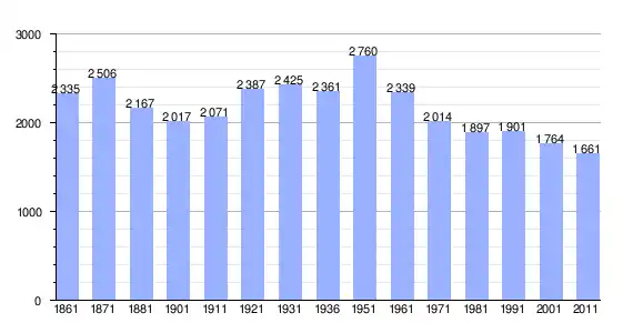 | Variação demográfica do município entre 1861 e 2011[3] |
