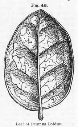 - Peumus boldus Molina)— originária do Chile; produz frutos comestíveis e as suas folhas são usadas para fins medicinais ou para preparação de tisanas; utilizada nos trópicos como planta ornamental.