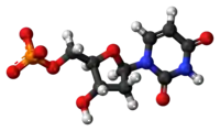 Monofosfato de deoxiuridina (dUMP) é a forma deoxigenada de monofosfato de uridina (UMP), e é o precursor do monofosfato de deoxitimidina (dTMP), um componente da biossíntese do nucleotídeo de DNA.[1] Ao substituir o grupo hidroxila no carbono 2' da ribose por um hidrogênio, o UMP torna-se desoxigenada a dUMP.