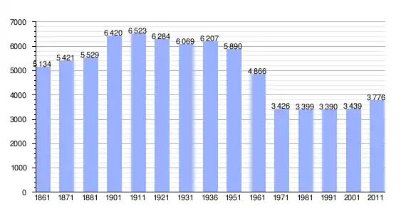 | Variação demográfica do município entre 1861 e 2011[3] |