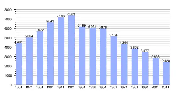| Variação demográfica do município entre 1861 e 2011[3] |