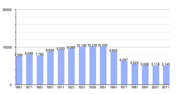 | Variação demográfica do município entre 1861 e 2011[3] |
