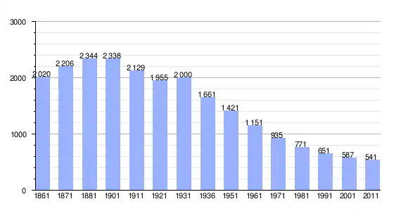 | Variação demográfica do município entre 1861 e 2011[3] |