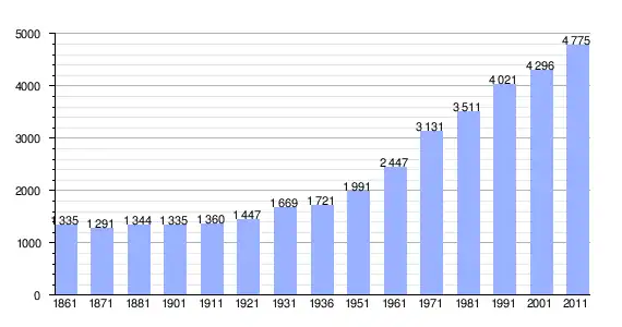| Variação demográfica do município entre 1861 e 2011[3] |
