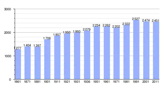 | Variação demográfica do município entre 1861 e 2011[3] |