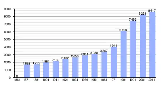 | Variação demográfica do município entre 1861 e 2011[3] |