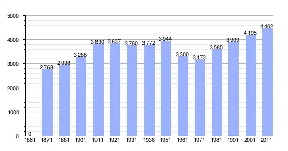 | Variação demográfica do município entre 1861 e 2011[3] |