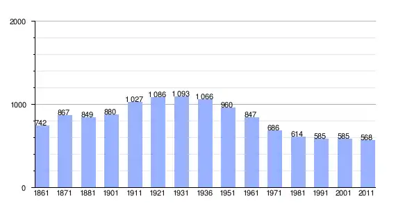 | Variação demográfica do município entre 1861 e 2011[3] |