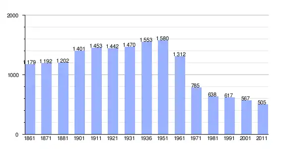 | Variação demográfica do município entre 1861 e 2011[3] |