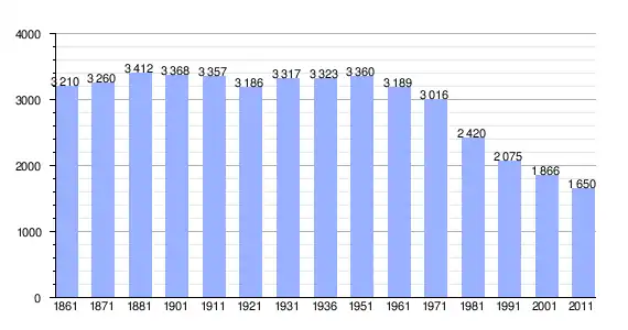 | Variação demográfica do município entre 1861 e 2011[3] |