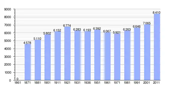 | Variação demográfica do município entre 1861 e 2011[3] |