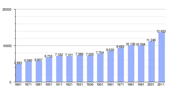 | Variação demográfica do município entre 1861 e 2011[3] |