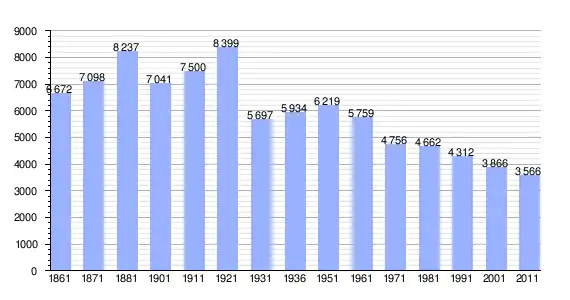 | Variação demográfica do município entre 1861 e 2011[3] |
