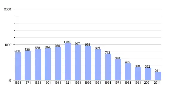| Variação demográfica do município entre 1861 e 2011[3] |
