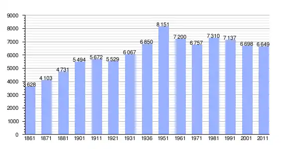 | Variação demográfica do município entre 1861 e 2011[3] |