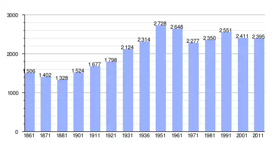 | Variação demográfica do município entre 1861 e 2011[3] |