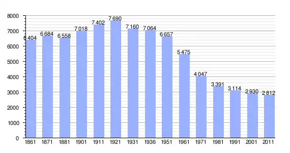 | Variação demográfica do município entre 1861 e 2011[3] |