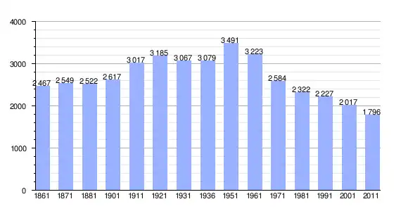 | Variação demográfica do município entre 1861 e 2011[3] |