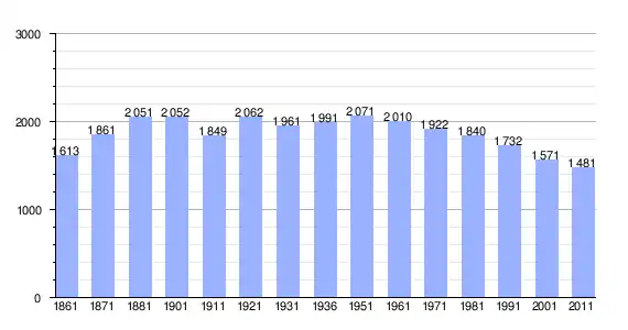| Variação demográfica do município entre 1861 e 2011[3] |