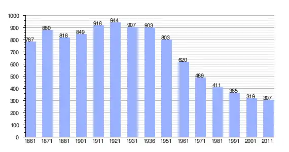| Variação demográfica do município entre 1861 e 2011[3] |