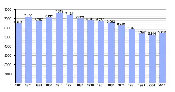 | Variação demográfica do município entre 1861 e 2011[3] |