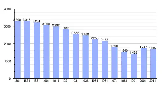 | Variação demográfica do município entre 1861 e 2011[3] |