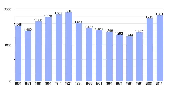 | Variação demográfica do município entre 1861 e 2011[3] |