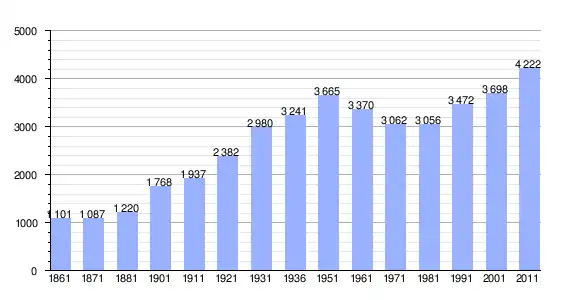 | Variação demográfica do município entre 1861 e 2011[3] |